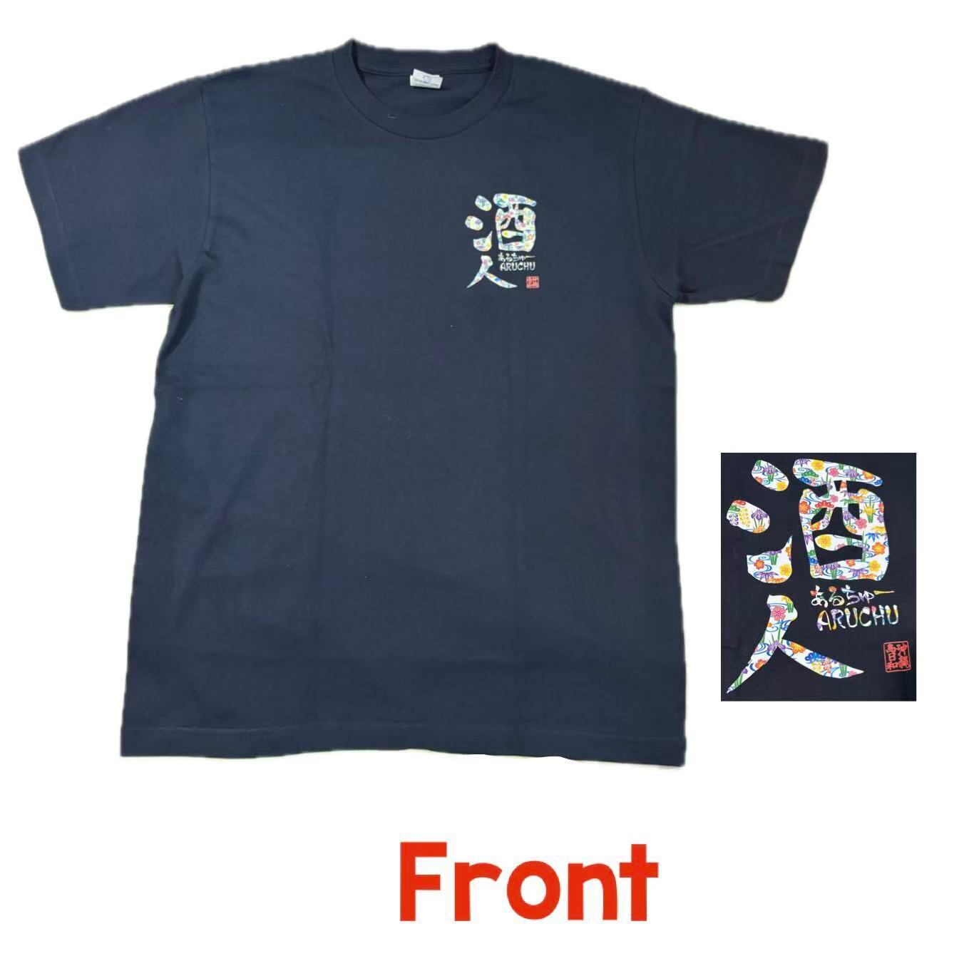 沖縄島日和 【酒人】黒Tシャツ ふざけ おもしろ 紅型 文字Tシャツ