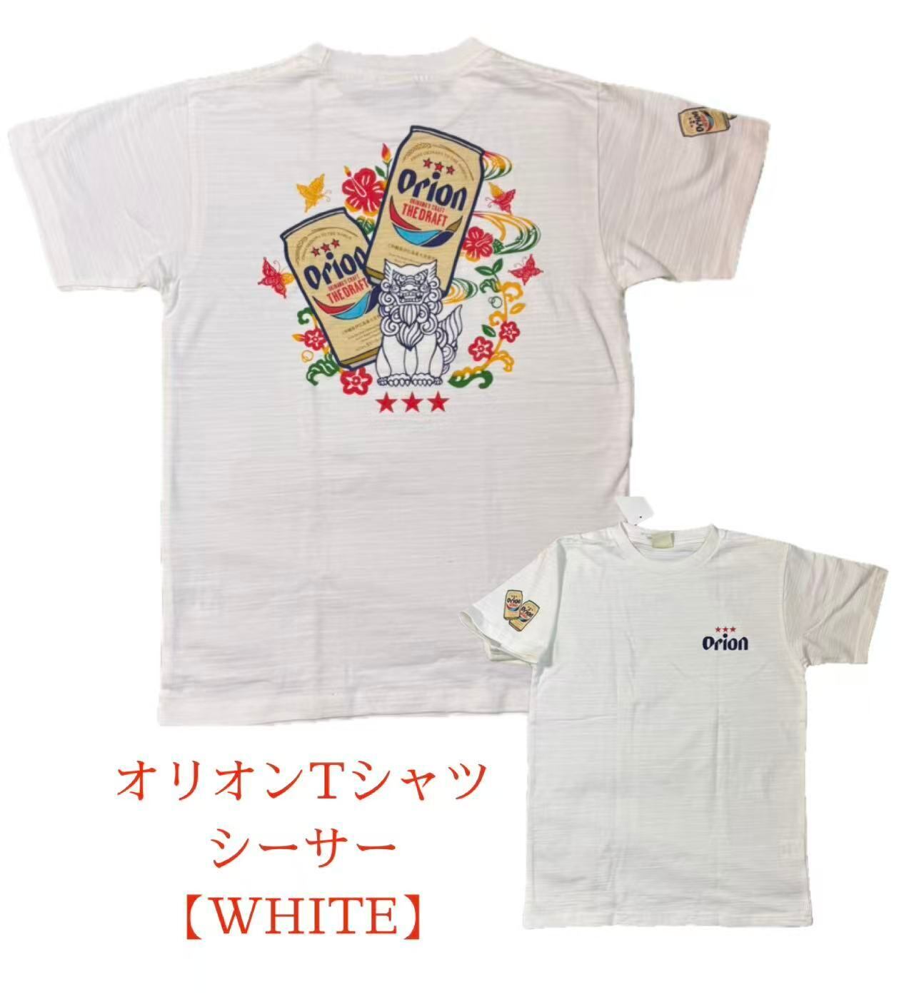 オリオン公式Tシャツ シーサー バックプリント オリオン缶 ホワイトorネイビー 【お土産】【沖縄】【定番】【大人気】【白】【紺】【カラフル】【Tシャツ】【じんべい】【オリオン缶】