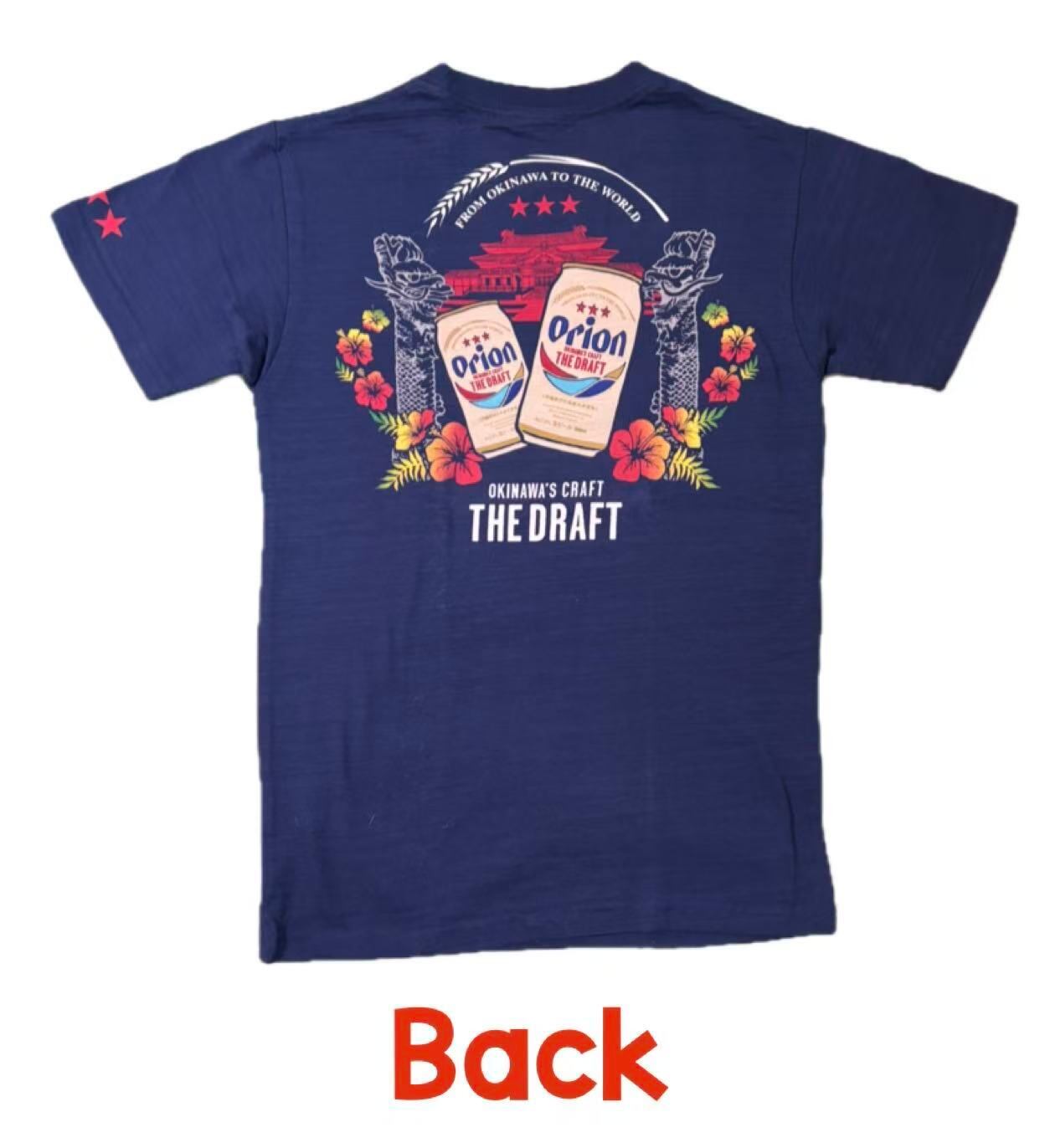 オリオン公式Tシャツ 首里城 バックプリント オリオン缶 ネイビーorホワイト 【お土産】【沖縄】【定番】【大人気】【紺】【カラフル】【Tシャツ】【首里城】【白】