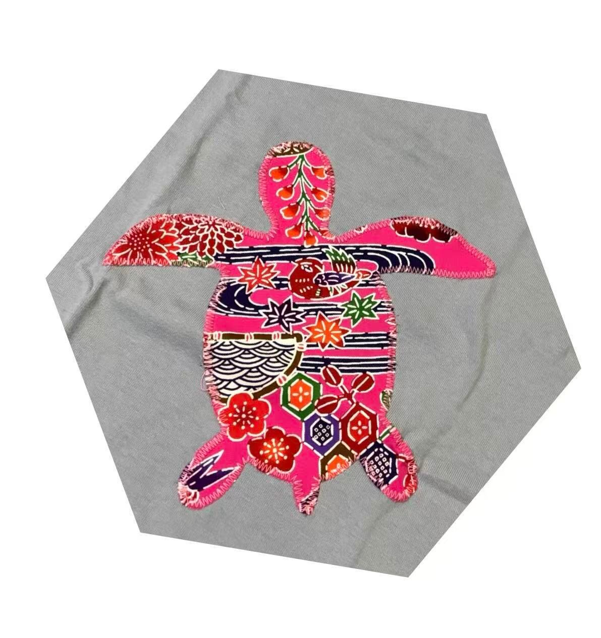 まったく同じものはない。そんな特別感のある、ウミガメの紅型のパッチワークTシャツです。