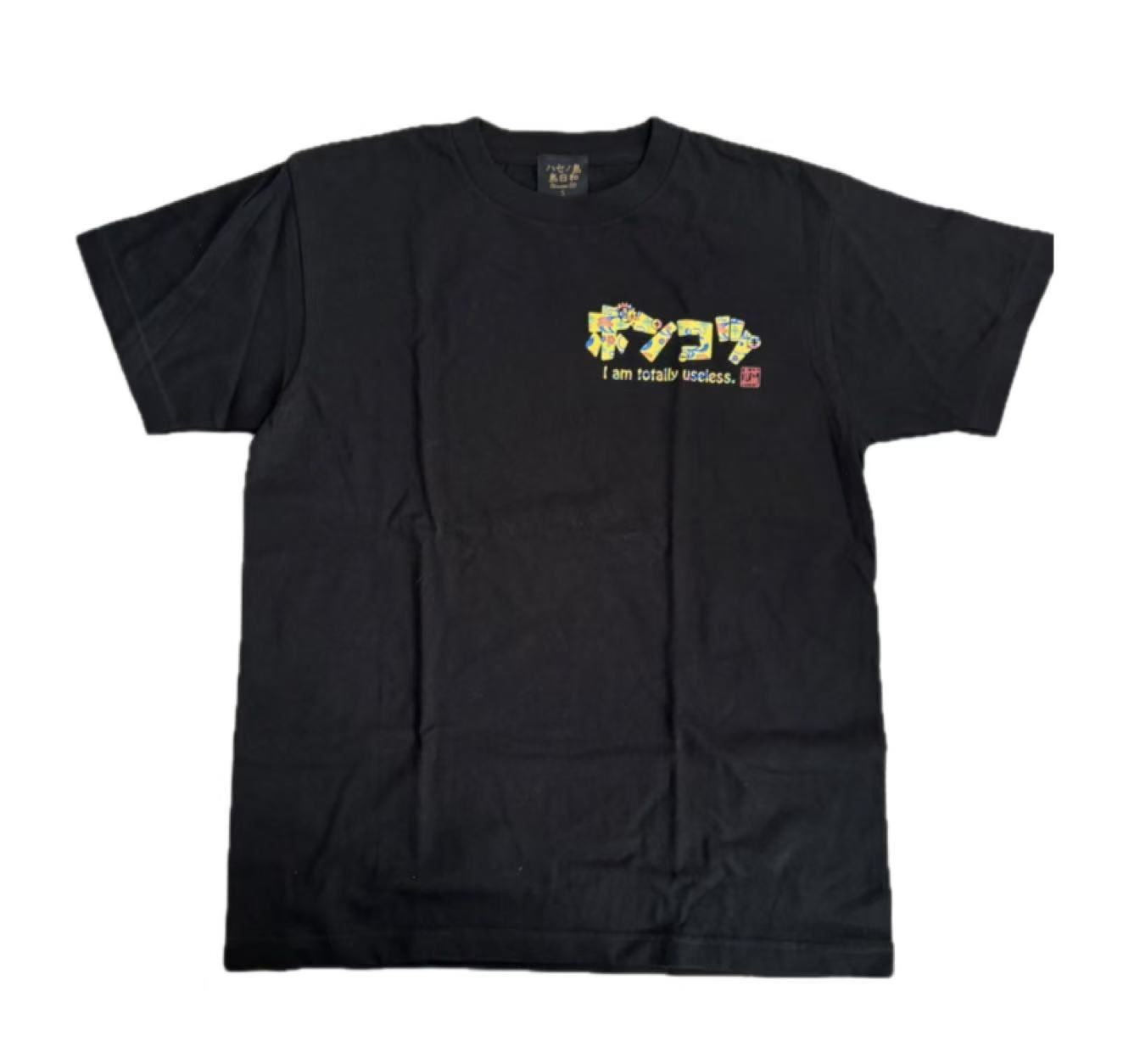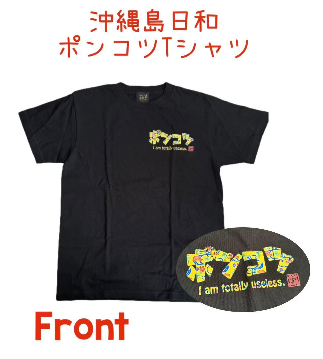 沖縄島日和 【ポンコツ】黒Tシャツ ふざけ おもしろ 紅型 文字Tシャツ
