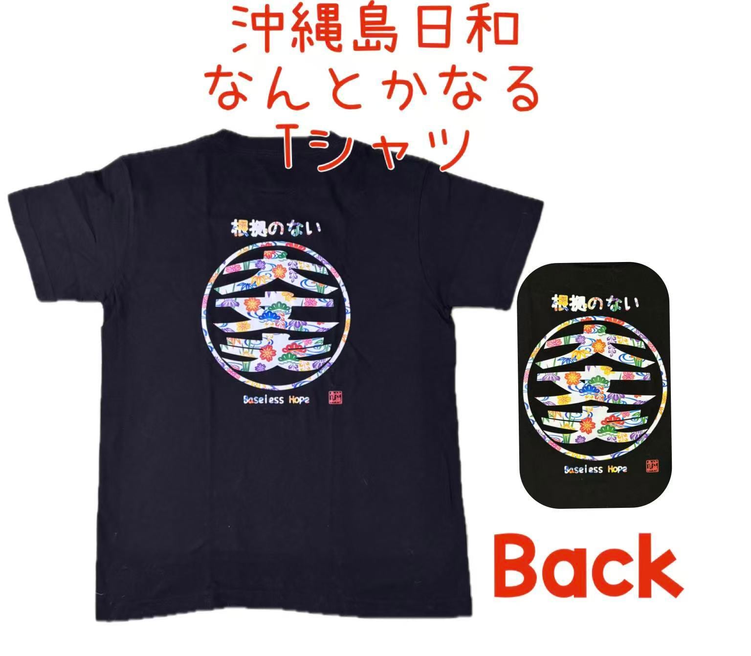 沖縄島日和 【なんとかなる】黒Tシャツ ふざけ おもしろ 紅型 文字Tシャツ